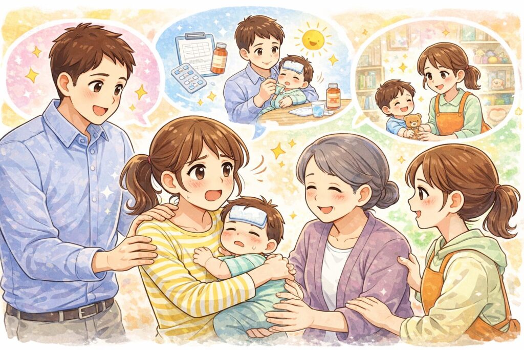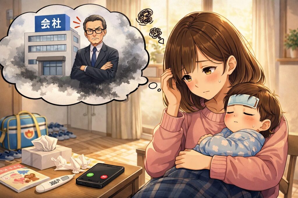 もし仕事を休むことへの申し訳なさが大きいなら、パパや周りのサポートを頼ったり、地域の病児保育を利用することも考えてみてくださいね。全部を一人で背負わなくて大丈夫です。