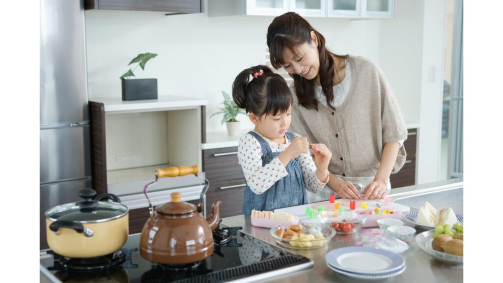 我が家では、火を使わずに作れるサラダを一緒に料理したり、食べ終わったお皿を流しに片付けたりしています。
