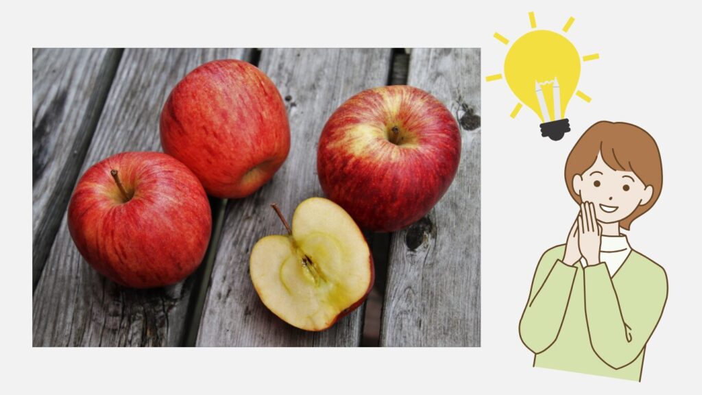 「リンゴだよ、甘くておいしいよ」