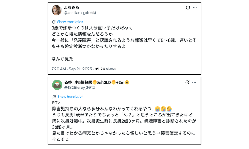 - 3歳で診断がつくのは、比較的「分かりやすい特性」や「重さ」があるケースに限られがち