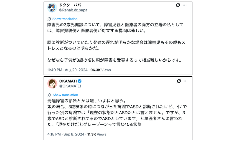 障害児の3歳児健診について、 障害児親と医療者の両方の立場の私としては、障害児親側と医療者側が対立する構図は悲しい。既に診断がついていたり発達の遅れが明らかな場合は障害児もその親もストレスとなるのは明らかだ。なぜなら子供が3歳の頃に親が障害を受容するって相当難しいからです。