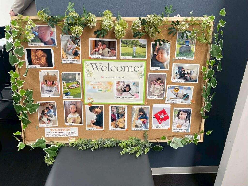 アプリに投稿していただいた写真を会場に飾りました。応募してくださった皆様、ありがとうございました!親子の笑顔、子供たちの無邪気な表情、福がつまった写真を見て、子育ての幸せを改めて感じていただけたら嬉しいです。