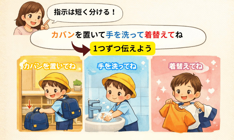 言葉だけの説明が難しい子には、“見て分かる工夫”がとても効果的です。