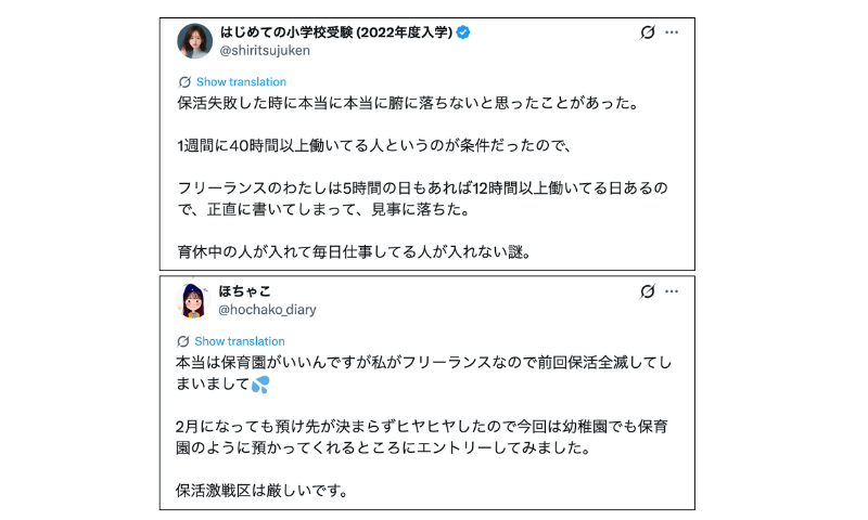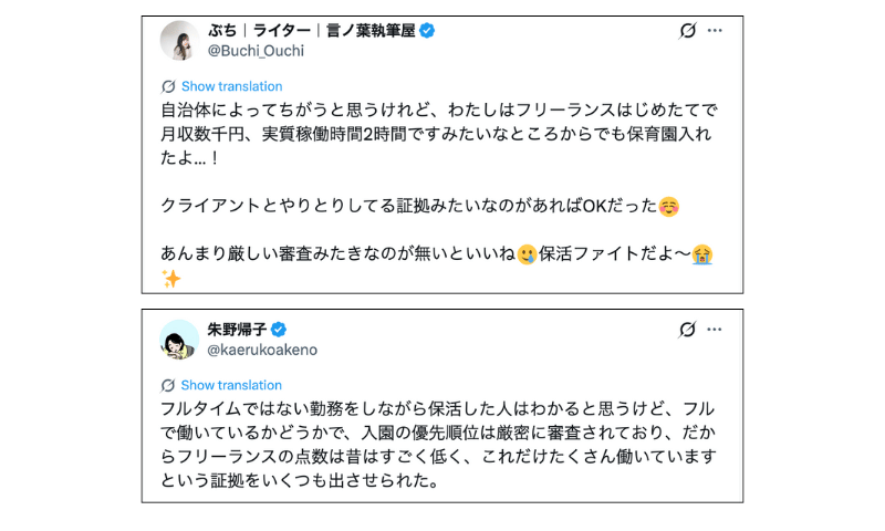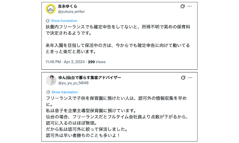 フリーランスの保活についてXでリサーチしたところ、想像以上に多くのリアルな声を集めることができました。